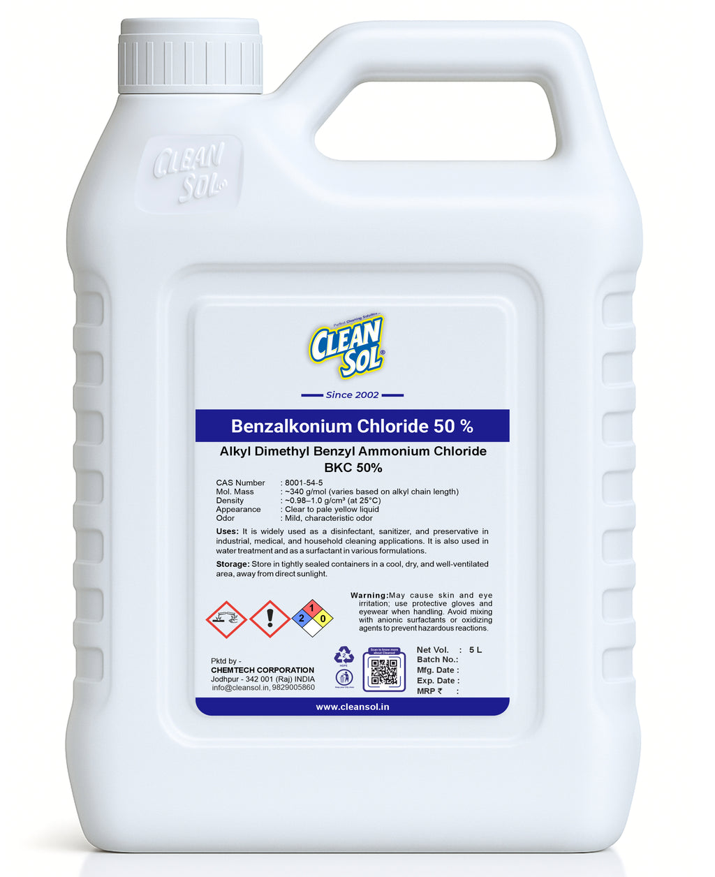 BKC 50% is widely used as a disinfectant, sanitizer, and preservative in industrial, medical, and household cleaning applications. It is also used in water treatment and as a surfactant in various formulations.