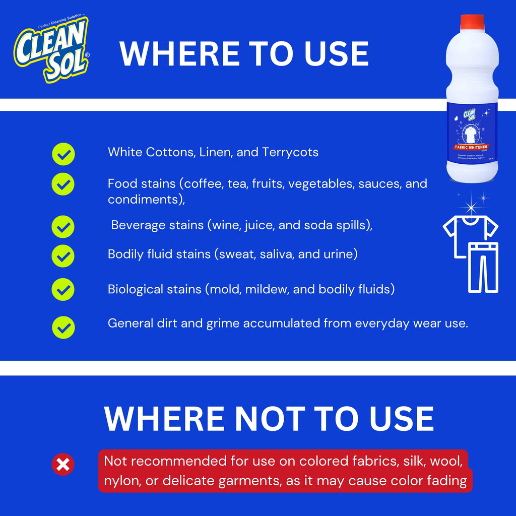 Cleansol Fabric Whitener | Removes Stubborn Stains | Brightens White Clothes