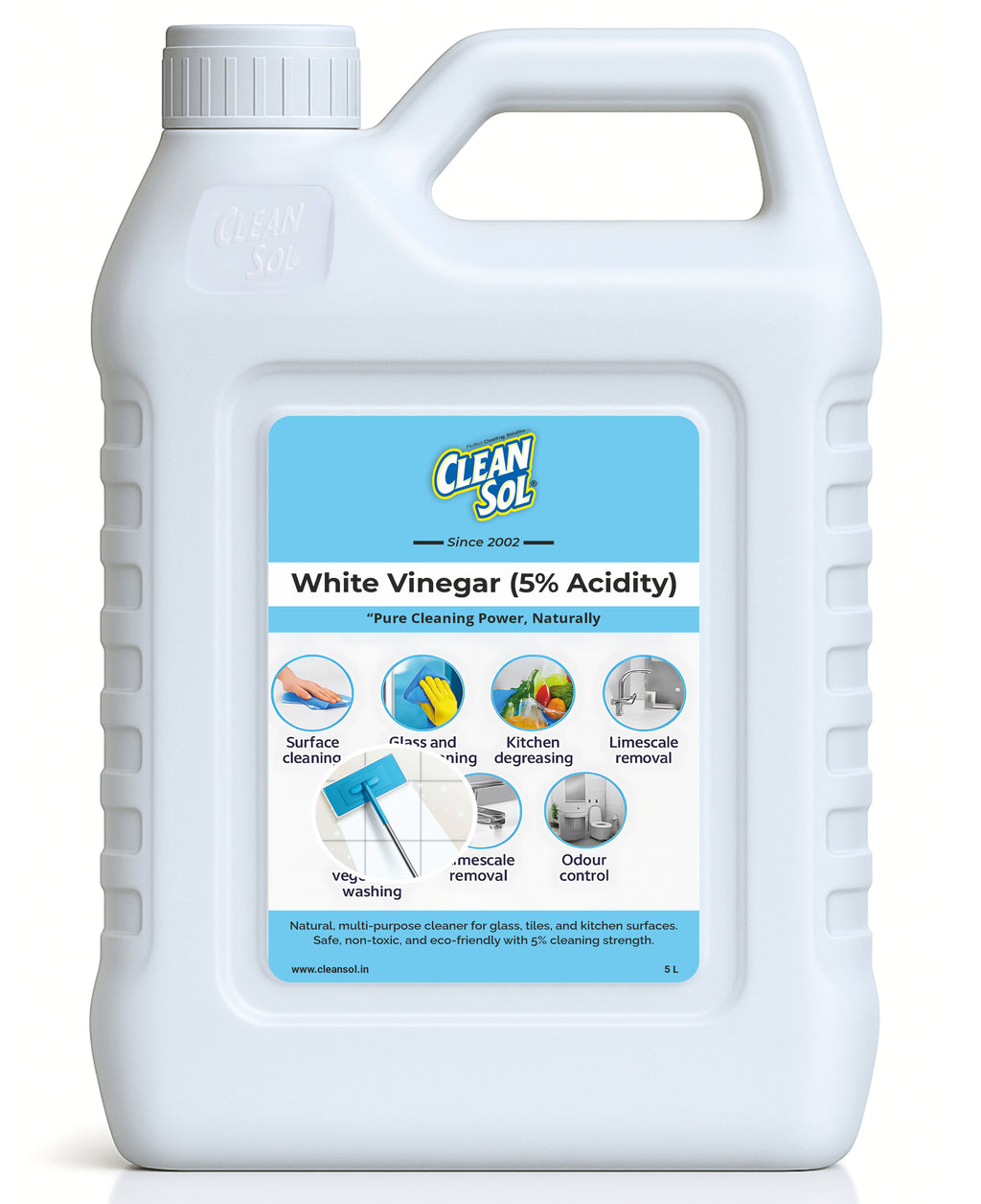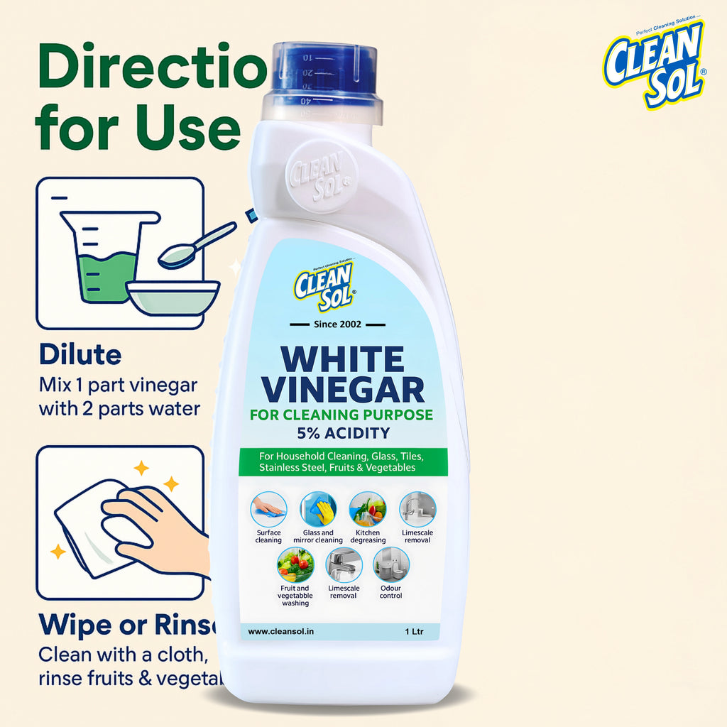 Cleansol White Vinegar for Cleaning Purpose | 5% Vinegar for Household Use | Safe for Fruits & Vegetable Washing | Glass, Tile, Kitchen & Surface Cleane